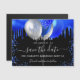 A black background decorated with royal blue drips, confetti, and balloons. Personalize and add a date and name/age. The text: Save the Date is written with a large trendy hand lettered style script.