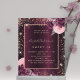 A deep burgundy background decorated with burgundy and pink florals, flowers and faux silver glitter, sparkles. Personalize and add your name and party details. Rose gold colored text.