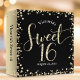 “Happy Sweet 16”. Let your favorite Sweet 16 birthday girl celebrate her milestone with this stunning keepsake scrapbook memory album. Gold glitter script typography and confetti overlay a black background. Black serif typography and brushed faux gold foil are on the spine. Additional gold foil confetti dots overlay black on the back. Personalize the custom text with the birthday girl’s name and birthday date. Great for the budding fashionista who loves modern glitter and glam! Matching invitations, thank you cards, plates, napkins and other birthday goodies are also available in this trendy and special collection.