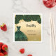 For a Sweet 16, 16th birthday party. A faux gold looking background with green confetti, a dress and green roses, florals. The name is written with a modern hand lettered style script. Personalize and add your name and a date.