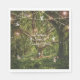 Pretty paper napkins with an Enchanted Forest theme. Beautiful Fairies sitting in tree branches that have pretty string lights with Rabbits, Red Mushrooms and Moss on the forest floor.