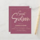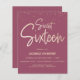 This elegant and festive 4.5" x 5.6" Sweet 16 Party Paper Sheet Invitation features the words "Sweet Sixteen" in a modern, gold (simulated foil) font. The background is pink (eggplant, magenta), but can be changed to any color of your choice. Party details can be easily customized for your special event. A beautiful, simple, and inexpensive way to invite guests to celebrate a 16th birthday. Envelopes sold separately as an ad-on.