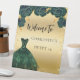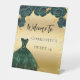 Sweet 16 green gold dress flowers welcome pedestal sign
