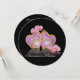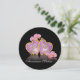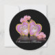 Sweet 16 Birthday party round Invitation pink and black. Pretty pink and gold hearts on black background with orchid flowers. Customizable. Change the background color and font to suit your taste. This is a new shape offered at Zazzle.com