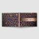 Elegant, cool, glamorous and feminine for a Sweet 16, 16th birthday party with brown, golden and black leopard print, decorated with golden confetti. Template for a name and age 16. A faux bronze metallic looking band. Black hand lettered style script, letters.