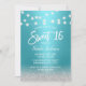 Sweet 16 Modern Turquoise & Silver Glitter Invitation