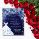 A modern, stylish and glamorous invitation for a Sweet 16, 16th birthday party. A navy background with faux silver glitter sparkles, a dress and blue roses, florals. The blue background color is uneven. The name is written with a modern hand lettered style script. Personalize and add your party details.