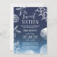 Sweet 16 Navy Blue Ombre Beach Starfish Seashells Invitation
