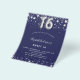A modern, stylish and glamorous invitation for a Sweet 16, 16th birthday party. A navy blue background, decorated with faux silver stars. Personalize and add your name and party details. Number 16 is written with a balloon style font.