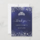 A Sweet 16, 16th birthday thank you card. A navy blue background color, the blue color is uneven. Decorated with faux silver glitter, sparkles. On front large white hand lettered script and the text: Thank You.