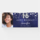 Sweet 16 navy blue silver stars photo party banner
