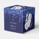 A navy blue background color. Decorated with blue glitter drips, paint dripping look and white balloons. Personalize and add a name, age and date. Modern hand lettered style script. With the text: Sweet 16 and Thank You written with a modern hand lettered style script.