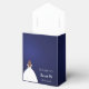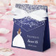 A navy blue, uneven colored background, decorated with confetti and a girl in a ball gown, dress. Personalize and add name and date.