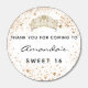 For an elegant Sweet 16, 16th birthday. A white background color, decorated with faux gold glitter dust and a tiara, crown. Personalize and add a name. With the text "thank you for coming to"