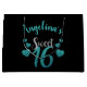 Sweet 16 Personalized Turquoise Glitter Script Large Gift Bag