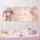 For an elegant Sweet 16, 16th birthday party. A rose gold background. Decorated with rose gold, pink drips, paint dripping look and balloons. Personalize and add a photo and the name. Perfect both as a welcome banner or as party decor. Use a vertical/portrait size photo.