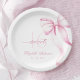 Beautiful Sweet 16 paper plates featuring a delicate pink bow design and soft blush tones.