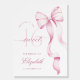 An elegant Sweet 16 welcome sign featuring a soft watercolor pink bow and graceful script typography.