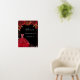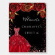 A welcome board for a Sweet 16, 16th birthday party. A black background with faux glitter dust, a red dress and red roses, florals. Personalize and add a name.