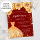 Sweet 16 red gold glitter dress roses invitation