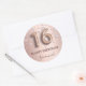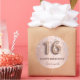 Elegant, classic, glamorous and girly for a Sweet 16, 16th birthday party. Rose gold and blush pink, gradient background. Decorated with pink sparkling diamonds. Personalize and add a name. With the text: Happy Birthday plus the birthday girls name. The name is written with a modern dark rose colored hand lettered style script. Number 16 is written with a balloon style font.