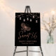 Sweet 16 Rose Gold Butterfly Chic Modern Birthday Foam Board Poster features elegant a rose gold butterfly with string lights on a black background with Sweet 16 in elegant calligraphy script with "Happy Birthday" and personalized with your custom name below. Personalize by editing the text in the text boxes. Designed for you by ©Evco Studio www.zazzle.com/store/evcostudio