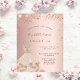 A modern, stylish and glamorous invitation for a Sweet 16, 16th birthday party. A rose gold background with faux sparkles and a rose gold dress. The name is written with a modern dark rose gold colored hand lettered style script. Personalize and add your party details.