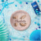 For a girly and glamorous Sweet 16, 16th birthday party. A rose gold faux metallic looking background with faux glitter drips, paint dripping look. Personalize and add a name. The name is written in dark rose gold with a modern hand lettered style script. Number 16 is written with a balloon style font.