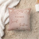 A pillow for a 16th years old girls room. A faux rose gold background with an elegant faux rose gold glitter dust. Personalize and add a name. Sweet Sixteen is written in dark rose gold with a large modern hand lettered style script.