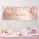 For an elegant Sweet 16, 16th birthday party. A rose gold background. Decorated with rose gold, pink drips, paint dripping look, and balloons. Personalize and add the name. Perfect both as a welcome banner or as party decor.