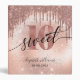 Modern, trendy 16th birthday party binder. Design features rose gold glitter drips, faux foil and sparkly glitter background, number 16 in trendy rose gold lettering, typography script sweet 16 , name and date.