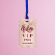 A modern, stylish and glamorous VIP badge for a Sweet 16 birthday party. A rose gold background decorated with confetti. With the text: VIP. Personalize and add name and party details.