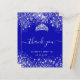 A Sweet 16, 16th birthday thank you card. A royal blue background color. Decorated with faux silver glitter dust. On front large white hand lettered script and the text: Thank You.