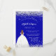 A modern, stylish and glamorous invitation for a Sweet 16, 16th birthday party. A royal blue background with faux glitter dust, a girl wearing a ball gown. The name is written with a modern hand lettered style script. Personalize and add your party details.