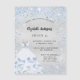 For an elegant Sweet 16, 16th birthday. A faux silver looking background. Decorated with blue faux glitter, sparkles and a dress for a winter wonderland themed party. Personalize and add a name, age and party details. The name is written with a hand lettered style script