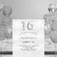 A modern, stylish and glamorous invitation for a girl's Swet 16, 16th birthday party. A faux silver looking background, decorated with glitter dust. Personalize and add your name nad party details. Number 16 is written with a balloon style font, script.