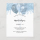 A white background. Decorated with light blue faux glitter drips, paint dripping look and balloons. Personalize and a name and party details.