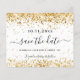 A girly and trendy Save the Date for a Sweet 16, 16th birthday party. A stylish white background decorated with faux gold glitter dust. Personalize and add a date and name and text. The text: Save the Date is written with a large trendy hand lettered style script with swashes.