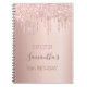 A notebook for a girly and glamorous Sweet 16th birthday. A faux rose gold background with an elegant faux rose gold glitter drips, paint drip look. The text: The name is written in dark rose gold with a large modern hand lettered style script. Tempate for a date and age 16. Perfect as a birthday party guestbook or for party planning and organizing.