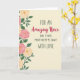 This card features a tender floral border running down the left side, set against a warm, muted cream background that feels gentle and welcoming ❤️. Soft blush-pink and pale yellow roses trail vertically, their spiraled petals nestled among dark green leaves, creating a quiet, affectionate mood like a loving glance held a moment longer. The blossoms have small ochre touches near their centers, adding depth without making the artwork feel fussy. On the right side, the main words “Amazing Niece” sit prominently in a flowing crimson style, larger than the rest and easy to spot at first look. Supporting lines appear nearby in a simpler, darker type, arranged to keep the message airy with comfortable spacing. The layout leaves plenty of open cream space around the text, letting both the words and flowers breathe, with a calm, friendly tone 🌼. Along the left edge, the rose-and-leaf column forms a vertical frame that contrasts with the open right side.