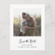 These simple and stylish, black and white wedding save the date postcards feature whimsical, vintage style script typography with your photo and a scannable QR code for your wedding website or details.