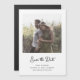 This simple and stylish, black and white wedding save the date magnetic card features whimsical, vintage style script typography with your photo.