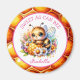 Personalized magnet. Watercolor style ai art depicting a cute honey bee sitting on a patch of pink flowers and honey. Make an adorable baby shower or new baby gift.