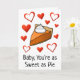A cute greeting card featuring an illustration of a slice of pumpkin pie with hearts all around it and reads, "Baby, You're as Sweet as Pie”. The inside asks, “Will You be my Valentine? Happy Valentine's Day” A funny Valentine for a pie lover. All text can be customized.