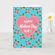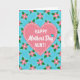 This greeting card features a large, soft pink heart centered on a light blue background that fades gently from top to bottom, setting a sweet, affectionate tone ❤️. A dashed white outline traces the heart, giving it a cozy, stitched look that feels like a caring hug. Inside the heart, the words “HAPPY” and “AUNT!” appear in simple, neat lettering, while “Mother’s Day” is written in a flowing cursive style beneath them. The text is arranged in the middle of the heart and stands out clearly in white against the pink. A small teal heart sits nearby as a tiny accent, like a quiet wink of love. Across the blue background, a repeating pattern of small pink flowers and paired green leaves adds a gentle garden feel 🌼. Each flower has four rounded petals with a small white center, spaced evenly around the heart.
