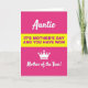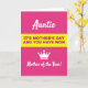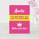 This greeting card uses three wide horizontal bands to guide the eye from top to bottom, with a rich fuchsia-pink filling the top and bottom sections. A bright lemon-yellow stripe runs across the middle, making the layout feel like a cheerful announcement shared between close family ❤️. In the top pink area, the word “Auntie” appears in smooth, flowing white lettering, centered and easy to spot. The yellow center band carries the message “IT’S MOTHER’S DAY AND YOU HAVE WON.” in magenta, all-capital letters that stand out strongly against the light background. Near the bottom, “Mother of the Year!” is written in matching white, flowing lettering, giving the design a sweet, affectionate rhythm like a warm compliment offered with a smile 🌼. Above that lower line, a simple white crown icon adds a lighthearted, celebratory touch without crowding the text. The overall look balances strong color contrast with gentle curves in the lettering, suggesting admiration and closeness through the way the words and symbols are framed. The crown sits centered in the lower pink band, just above “Mother of the Year!”, with the magenta all-caps line spanning the middle yellow stripe.