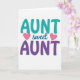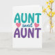 This card features the word “AUNT” repeated twice in large, rounded letters, stacked to guide your eyes from top to bottom. The top “AUNT” is set in a bright teal, while the lower “AUNT” appears in a deep purple, creating a sweet back-and-forth contrast like a friendly conversation. Between them, the smaller word “sweet” sits centered in deep blue, adding a softer note that feels like a gentle compliment ❤️. Two small pink hearts flank the word “sweet” on either side, like a quiet hug wrapped around the middle line. The white background keeps everything airy and open, letting the teal, blue, pink, and purple stand out clearly without crowding each other. The rounded letter shapes and the neat spacing give the message an affectionate, easygoing look, like a warm smile shared between close family 🌼. The hearts are simple, rosy pink shapes placed symmetrically to the left and right of the deep-blue “sweet” line.