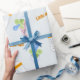 Celebrate the joy of a new arrival with this charming baby bottle-themed wrapping paper! Featuring playful baby bottles, pacifiers, and the cute phrase "Little sip!" this design is perfect for baby showers, newborn gift wraps, and first birthdays. The soft pastel tones make it ideal for both boys and girls, adding a fun and heartwarming touch to any present. A great choice for friends, family, and parents-to-be looking for adorable.