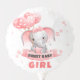 Adorable baby shower invitation featuring a cute baby elephant holding pink heart-shaped balloons, surrounded by delicate stars. The soft watercolor-style design in pastel pink and gray creates a sweet and dreamy atmosphere, perfect for celebrating the arrival of a little one. A lovely pink ribbon banner at the bottom provides space for customization, making it ideal for a baby girl’s shower.