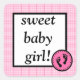 This sticker or label reads "Sweet Baby Girl!" with tiny baby footprints. Perfect for baby shower gift bags, envelope seals or scrapbooking. Apply sticker to candles,candy bars or homemade food. Personalize the text-Click customize it-TIP: KEEP TEXT INSIDE RED DOTTED LINES! Available in other colors!